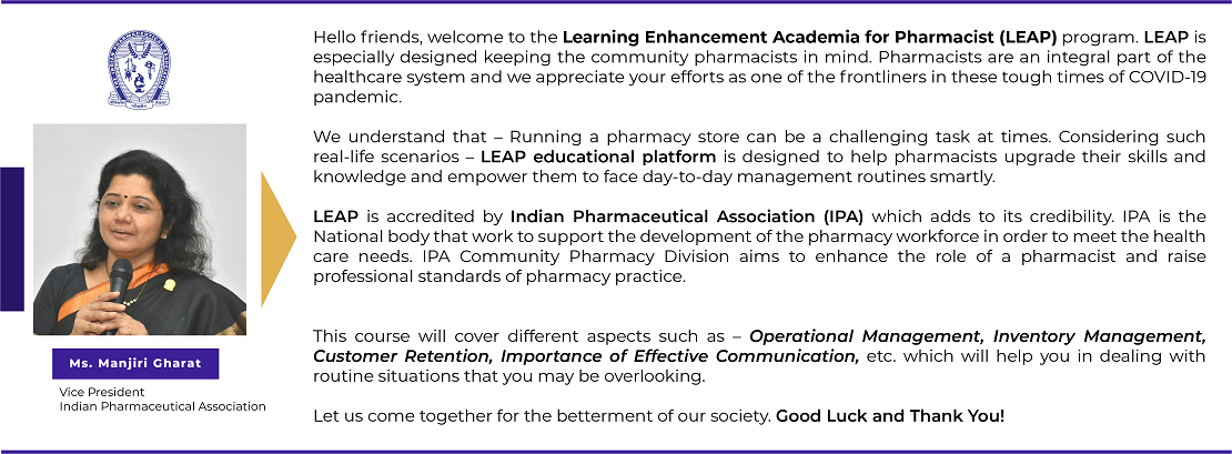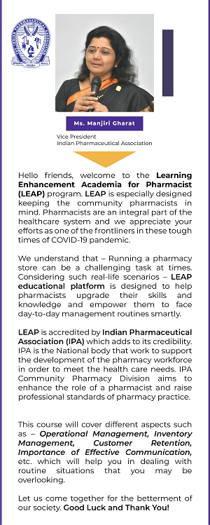 LEAP platform is brought to you by Bayer Zydus Pharmaceutical in association with Indian Pharmaceutical Association (IPA).